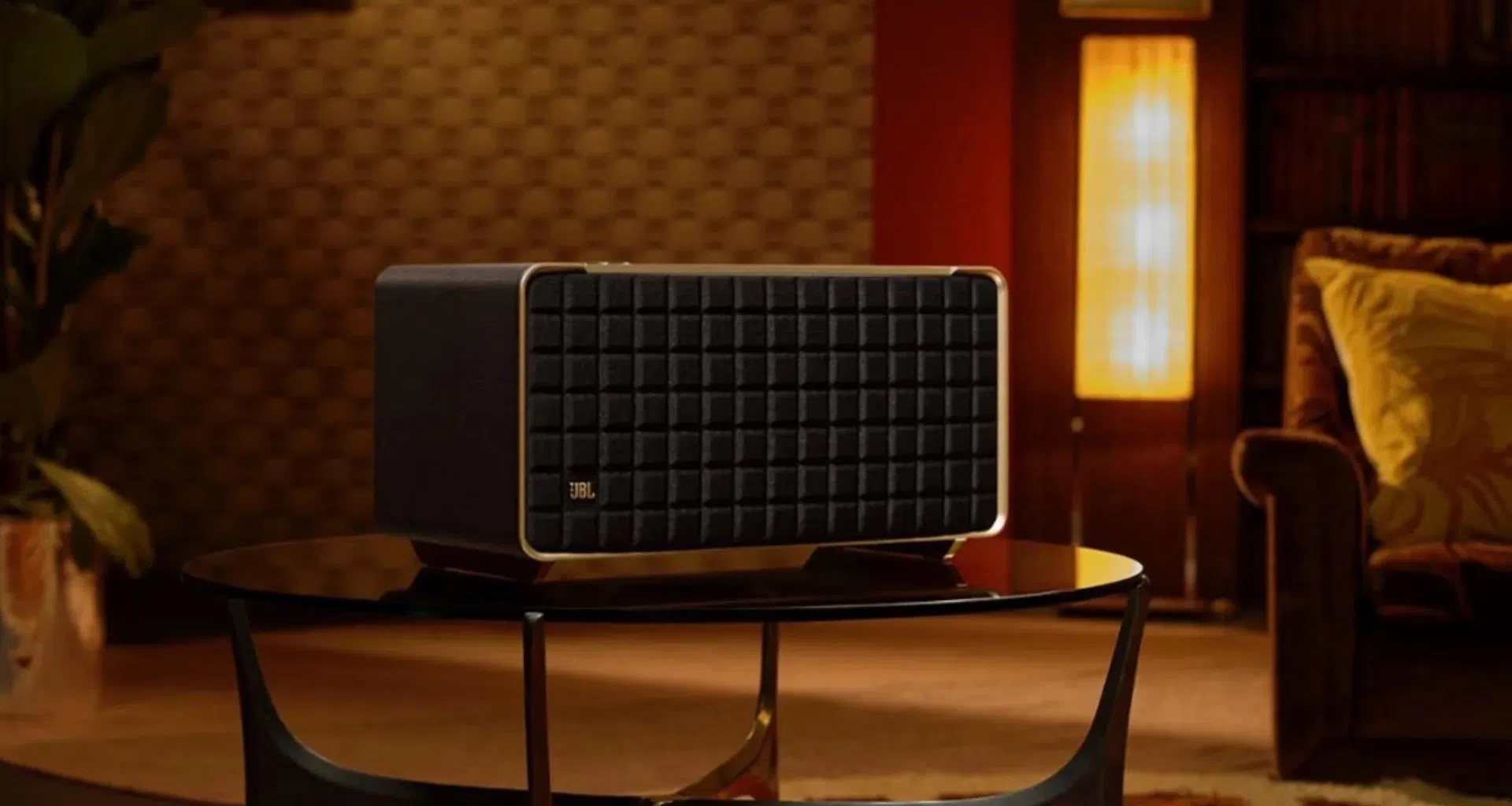 Passando al look, la parte anteriore presenta una finitura dorata sui bordi che aggiunge eleganza a qualsiasi luogo in cui viene posizionato l'altoparlante wireless. C'è anche un rilievo con la griglia Quadrex , marchio di fabbrica dell'altoparlante retrò JBL Authentics, con un rivestimento in pelle che ricorda la pelle scamosciata e conferisce quel tocco premium.